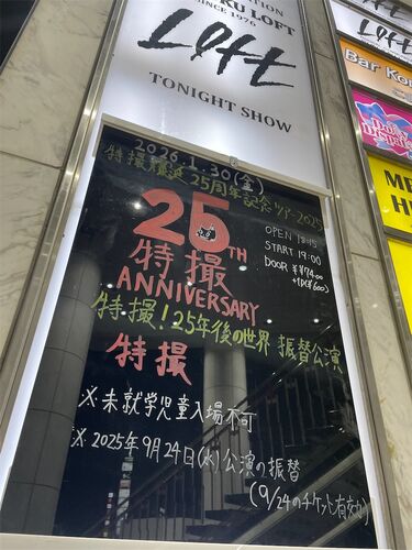 冬の特撮ツアー!先週2月9日に大阪で初日、11日に名古屋で、今日がファイナル。このツアー期間に東京は二週連続の大雪に見舞われ。先週は13年ぶりの大雪警報が出て、積雪は45年ぶりとなり、大阪へ向かうオーケンも移動に時間がかかったそう。13年前の大雪警…